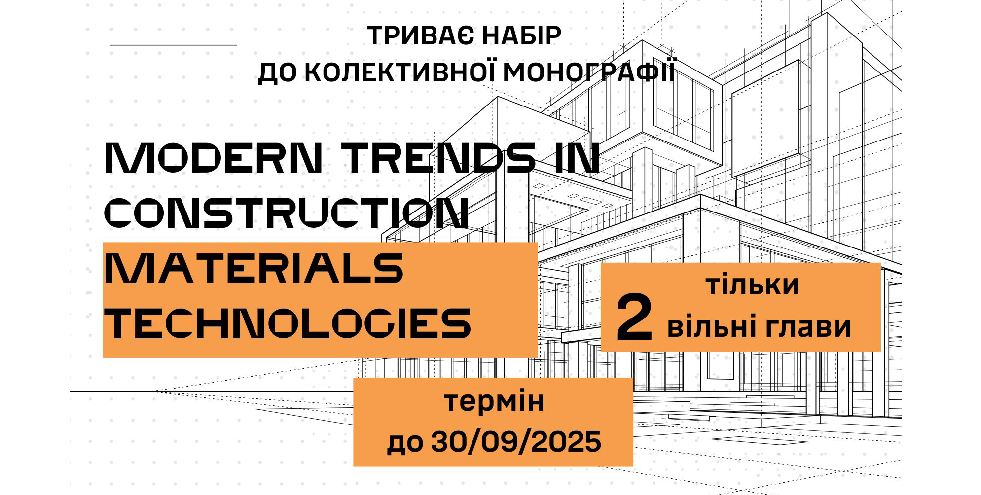 RECEPTION OF MANUSCRIPTS FOR THE FORMATION OF THE COLLECTIVE MONOGRAPH "MODERN TRENDS IN CONSTRUCTION MATERIALS TECHNOLOGIES" IS ONGOING